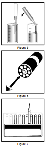 - 7. Đặt VACUette giữa các thanh dẫn hướng đầu dọc ở mặt trong của cốc đựng thuốc pha loãng. Chụp đầu ống. Ống thuốc sẽ lấp đầy để lại bong bóng để trộn (hình 5)